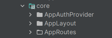core: It contains AuthProvider, AppLayout, AppRoutes Configuration and it's settings